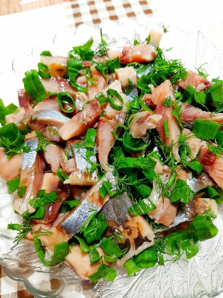 Мировая закуска на все времена🥗. А если ещё и на чёрный хлебушек, смазанный сливочным маслом😋😋. #непп #закуска #селёдка #фуршет #быстро Ингредиенты: крупная соленая сельдь весом 500 гр, зелень свежая (лук, укроп), ст л подсолнечного масла, винного (или яблочного) уксуса Способ приготовления: Рыбку чистим, потрошим, удаляем голову и хвост, снимаем кожицу и вытаскиваем хребет, также удаляем все косточки из рыбы. Подготовленное филе режем на кусочки, смешиваем с порезанной зеленью и заправляем подсолнечным маслом с уксусом. Приятного аппетита.😊 Готовьте с удовольствием.
