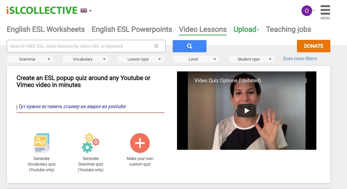 Уважаемые коллеги! Сегодня я хочу рассказать о таком популярном среди учителей ин.яза онлайн ресурсе как https://en.islcollective(точка)com . На этом сайте представлены многочисленные Worksheets (рабочие листы) с разнообразными заданиями, презентации. И многие мои коллеги успешно используют их на своих уроках. Но оказывается, не все учителя знают, что на сайте есть возможность создавать бесплатно свои собственные интерактивные уроки с использованием видео. Казалось бы, аудирование-одно из самых сложных упражнений для многих учеников, но, когда оно подобрано соответственно их уровню, интересно оформлено, оно может стать одним из самых любимых упражнений. Мои ученики просто влюблены в эти задания, они воспринимают их как игру и с азартом берутся выполнять их.