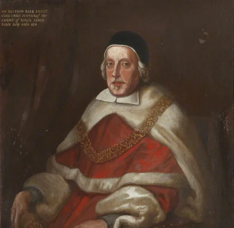 Сэр Мэтью Хейл был очень влиятельным английским юристом, жившим между 1609 и 1676 годами. Сын юриста, он потерял родителей в возрасте 5 лет и был воспитан очень религиозным родственником, от которого унаследовал свою веру. Хейл подумывал стать священником, но в итоге выбрал профессию своего отца.
