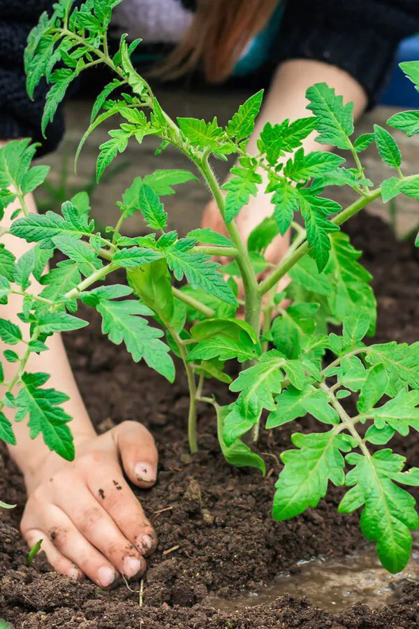 Глубокая посадка помидоров дает растению еще больше корней для впитывания питательных веществ.