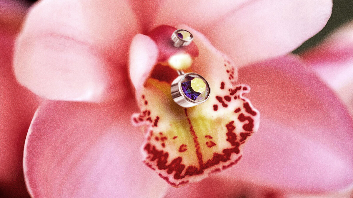 - Clitoris. Пирсинг клитора. Анатомия не всех женщин позволяет проводить этот половой пирсинг. Здесь используется миниатюрное украшение, чтобы сохранить чувствительность органа. Период заживления- от месяца до двух.