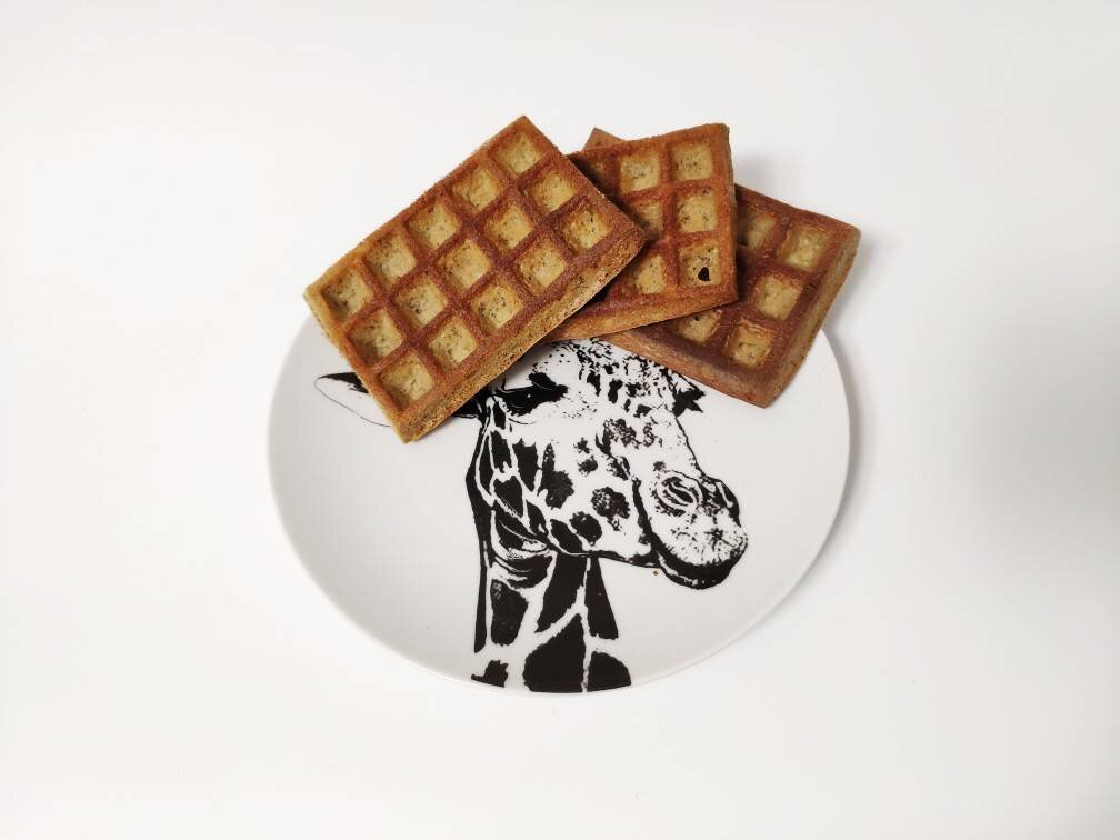 Вариант номер 1 #пп Ингредиенты: банан, яйца, кефира, сахара/ или сахзам по вкусу, кукурузной муки, овсяной муки, соды Способ приготовления: Банан размять вилкой, добавить яйца, сахар, кефир, перемешать венчиком. Последовательно добавить муку двух видов и соду, тщательно перемешать. Силиконовые формы для вафель смазать растительным маслом, вылить тесто. Выпекать минут 30-35 в разогретой духовке (180 градусов). Подавать с ягодами, любимым джемом, сгущённым молоком, шоколадом или арахисовой пастой.