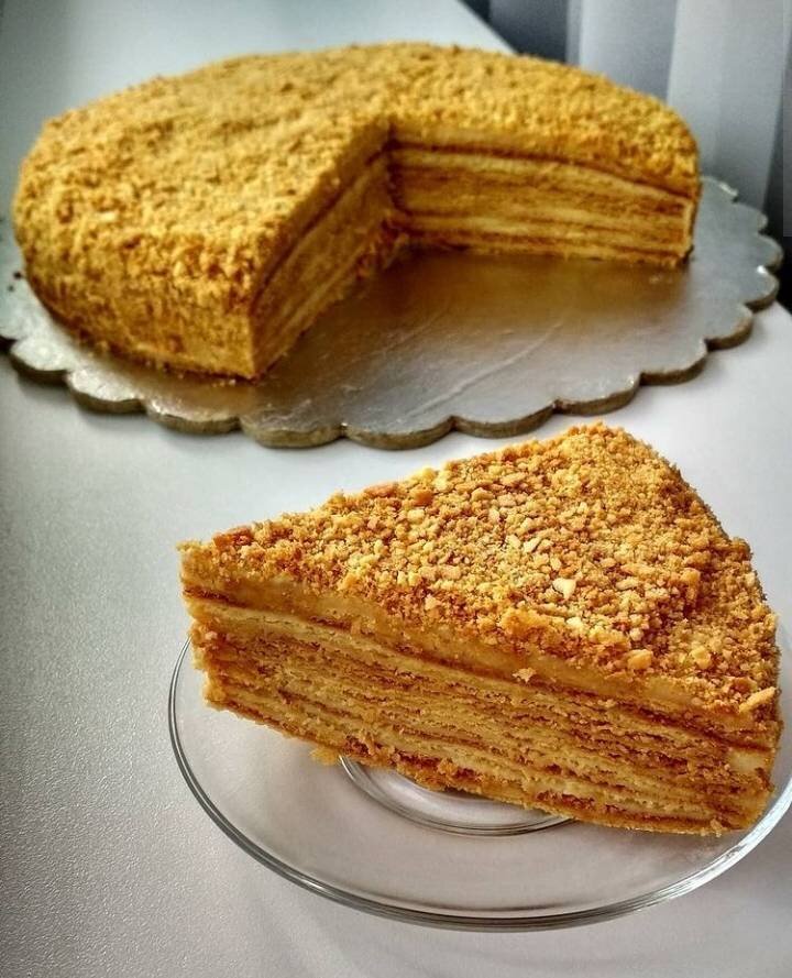 #вишиванка #україна #українськірецепти #випічка #медівник Ингредиенты: масла, цукру, меду (якщо рідкий, то пів стакана), солі, яйця, борошна (залежно від якості борошна, може бути більше), соди , Для начинки (крем):, сметани жирної, цукру, рідкого меду, крохмалю, яйце, ваніліну, масла Способ приготовления: Для коржів: мед, цукор і масло топимо на маленькому вогні постійно помішуючи. Потім коли маса стала рідкою додати соду і швиденько вимішати до 1 хв. Утвориться піна, це так має бути, і зняти з вогню. Далі остудити нашу масу і вводимо по одному яєчку, добре вимішуючи. Таким самим способом добавляємо потроху борошно. Заміси тісто, і розділи його на 12 частин. Кожну частину розкачай на пергаменті дуже, прям дуже тоненьким просвітлюючим слоєм. І став випікати до 3 хв. при 180'. Так, так, до 3 хв, оскільки наш корж дуже тоненький. 🆘Як тільки корж витягнеш з духовки, швидко зроби йому форму поки гарячий. В мене форма коржів була круглою. Видавлювала кришкою від сковорідки 👌. Залишки корж