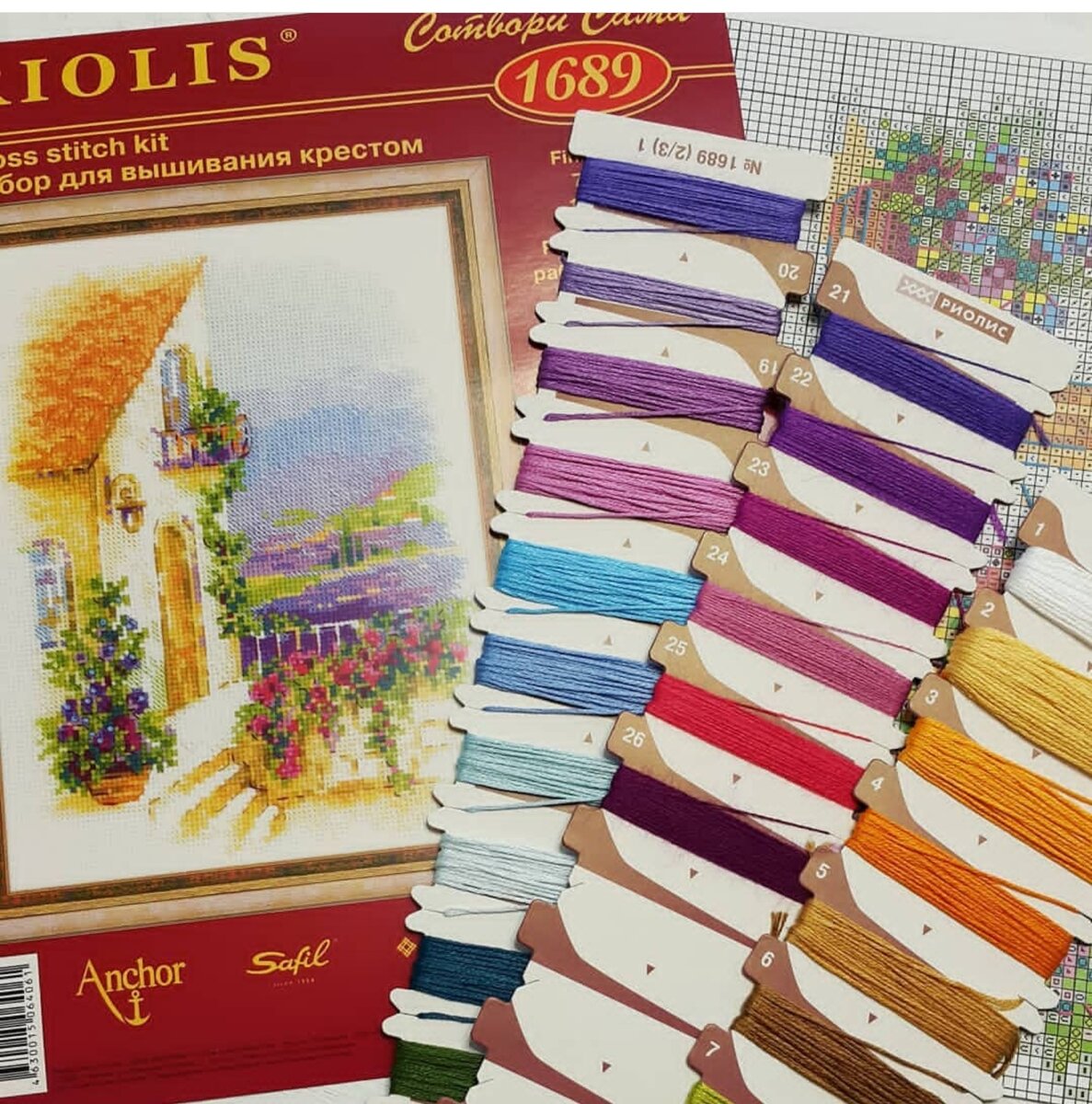 Покажу одну из любимых вышитых работ (хотя, что там скрывать, они все у меня любимые). Речь пойдет о дизайне " Прованская улочка" от Риолис. Начала вышивку я в конце марта, а закончила в начале августа. Чуть больше 4-х месяцев получилось. Это достаточно быстро для меня, т.к. вышиваю я, как правило, очень медленно. Верхняя часть работы (небо) должна была быть вышита полукрестом с наклоном влево, я же, толком не прочитав инструкцию, все вышила полукрестом вправо. Опомнилась лишь тогда, когда четверть работы уже была готова. Переделывать, конечно, ничего не стала. Допускаю, что, возможно, работа потеряла некоторый объем из-за этого, но я этого не запечаю. Участвовала я с этой работой в инстаграмном марафоне 21 утро с вышивкой. Суть его была в том, что с утра (до 9 часов по местному времени) успеть немного повышивать и выложить отчет вышитого. Иногда это реально было несколько крестиков. Однако, незаметно-незаметно, но это помогло неплохо продвинуться в работе. От марафона у меня ос