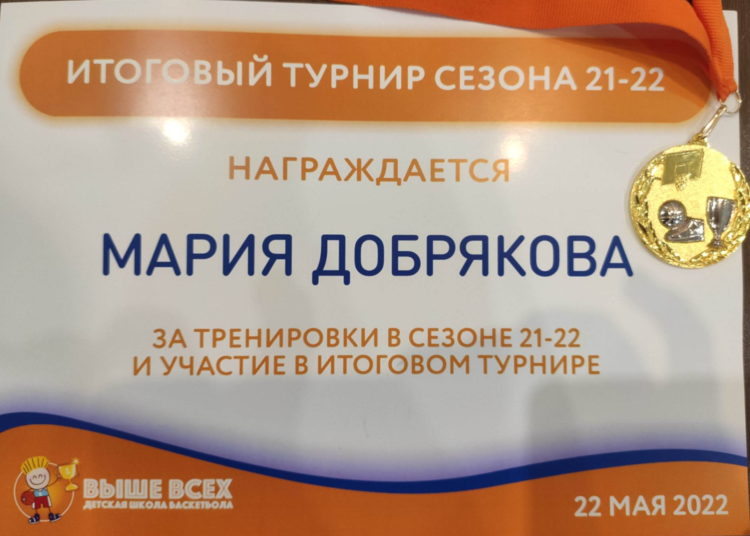 Наша воспитанница старшей группы 4 Мария Д. участвовала в итоговом турнире по баскетболу среди клубов Санкт - Петербурга "Выше Всех".