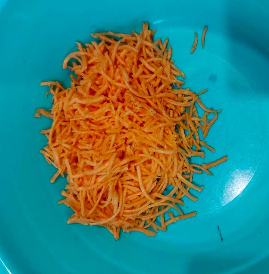 Складываем курицу и морковь в одну миску и добавляем сухарики и к ним давим чеснок. Добавляем майонез и соль, перец по вкусу.