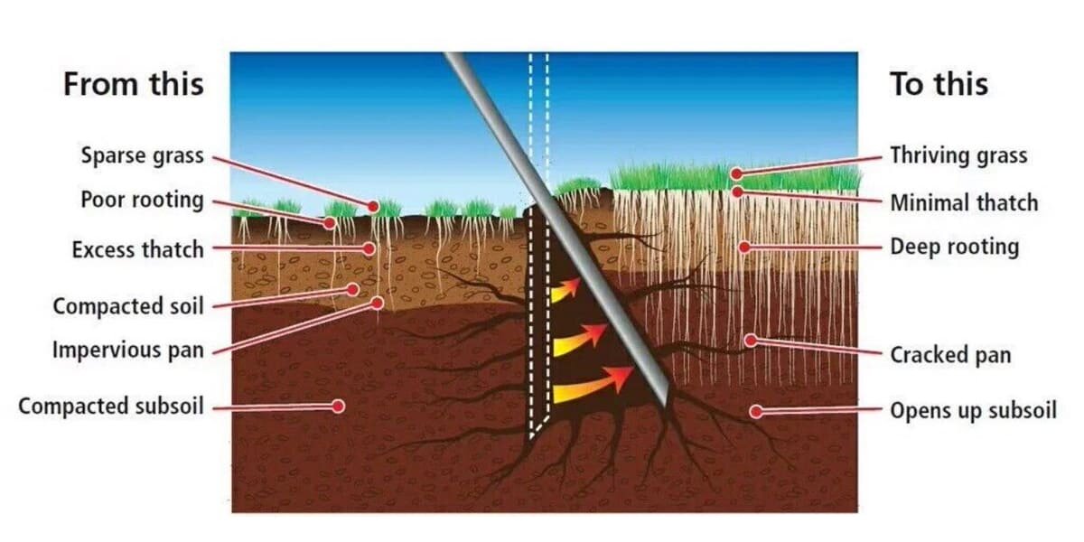 Теперь объясню, что это за звери. Если с аэрацией более-менее понятно — это насыщение почвы кислородом, то два остальных термина известны только достаточно «продвинутым» газоноведам. Скарификация — вычесывание газонного войлока происходит от слова «scarifico» — царапать. Аппарат для скарификации представляет собой вал с пружинными проволочками, который, вращаясь, действует подобно граблям, но более жестко. Работать им лучше по весне, когда необходимо избавится от старой травы, но опять же, когда почва достаточно просохнет. Совет: лучше работать без мешка, так как он небольшой и забивается очень быстро, потом можно все собрать в мешок косилки. Работы, как правило, лучше производить, начиная с третьего года жизни посевного газона либо, если был рулонный газон, через год после укладки. Вертикуция или прорезание верхнего слоя почвы сочетает в себе и скарификацию и аэрацию и является более щадящей и омолаживающей для газона операцией, хотя, смотря на результат работы, так и не скажешь. Пред