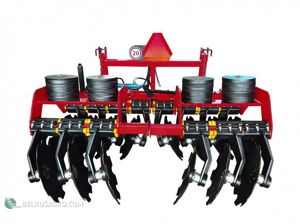 При использовании бороны без дозагрузки борона агрегатируется с тракторами тягового класса 1,4, с дозагрузкой трактора передними грузами (200 кг.) и заполнением передних колес водой.