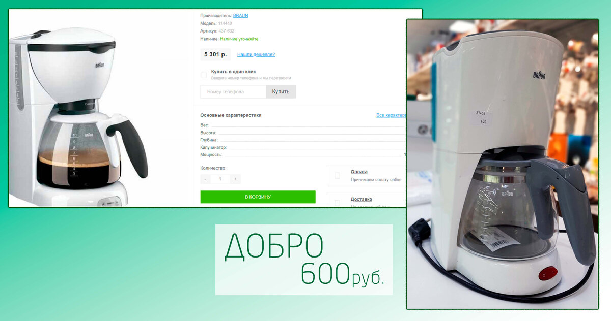 Хождение по комиссионкам — это, по сути, путешествие в Страну Чудес. Никогда не знаешь, что ты там найдешь, но в этом и весь смысл. Первоначально экономные покупки делали только опытные покупатели. Но вскоре это стало совершенно новой тенденцией, любителей экономных покупок, благодаря их наметанному глазу и знанию секонд-хенда, они находят настоящие сокровища. Сегодня предлагаем посмотреть на одни из самых выгодных покупок в КМ Добро Кофемашина Braun Выпить кофе с утра – святое дело для многих россиян. Без этого напитка многие не в состоянии начать продуктивную работу. Упрощает жизнь кофемашина или кофеварка. В магазине ДОБРО представлен широкий ассортимент подобных машин. Цена данной кофемашины, на просторах интернета, 5000руб, в КМ Добро 600руб. Выгода в 4400руб. Утюг Scarlett Этот бытовой прибор с которым хозяйке приходится работать почти ежедневно, поэтому лучше выбрать надежный бренд, способный выдержать любую нагрузку. В КМ Добро можно найти различный выбор утюгов от б/у до новы