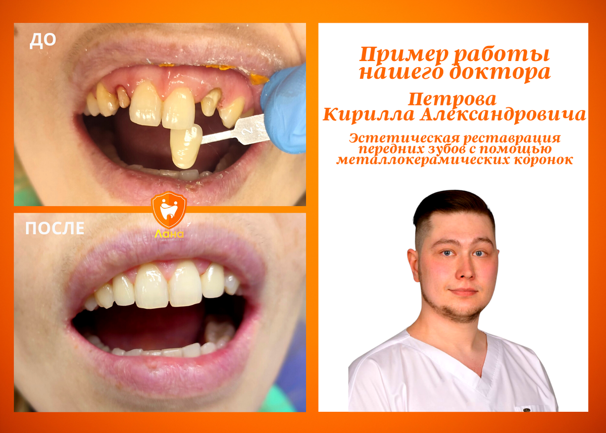 Пример работы до/после Пример работы нашего доктора Петрова Кирилла Александровича Опыт работы более 7 лет. Выполняет все виды ортопедических конструкций для зубов, проводит консультирование по современным методам протезирования.