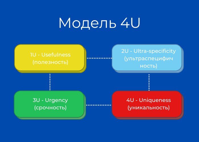 В своей практике я вижу, что большинство предпринимателей не придают значение важности формулировки их предложения (оффера). И как правило их предложения звучат примерно так: хорошие цены, надежная компания, мы предлагаем лучшие товары. Причем когда мы сами выбираем, то мы реагируем на конкретные предложения. К примеру: установим автосигнализацию с гарантией от угона и страховкой в 500 тыс.рублей в случае угона машины. Ваш оффер должен быть конкретным и выделять вас на рынке. Качественно составленный продающий оффер в разы увеличивает конверсию вашего сайта, лендинга или рекламного объявления 📈 Сейчас, в условиях ограниченных ресурсов, идет жесткая конкуренция за внимание клиента. Если раньше, чтобы зацепить внимание клиента уходило 5-7 секунд, то сейчас это 3 секунды 😱 Здесь нужно очень сильно постараться, а это всерьез отнестись к подбору картинок и написанию продающих текстов. Есть модель 4U. С ее помощью можно составить крутой цепляющий продающий оффер. Эта модель состоит из 4 э