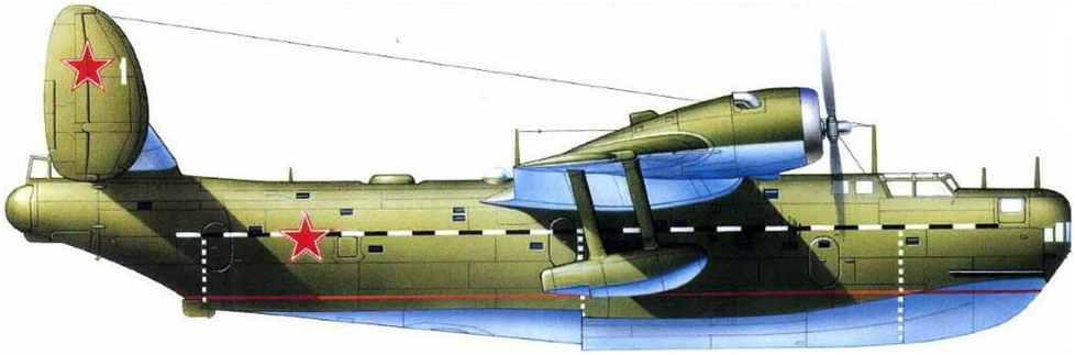 Гидросамолёт Бе-6 цельнометаллическая летающая лодка с высокорасположенным крылом типа "чайка", двухкилевым разнесенным вертикальным оперением и подкрыльными неубирающимися в полете поплавками поддерживающего типа.
