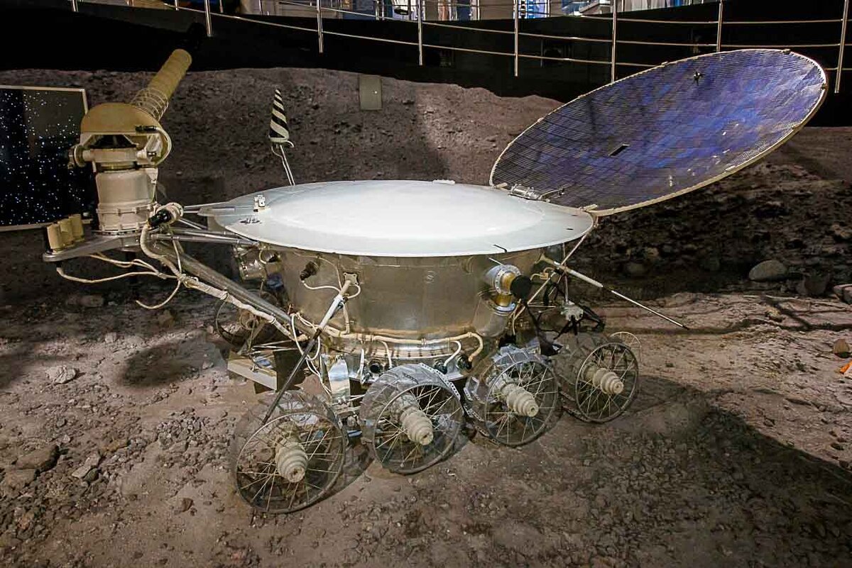 Межпланетные пилотируемые корабли – не профильное направление в отечественной космонавтике. Однако именно в Советском Союзе создали первые лунные космические станции: первое в истории колесное управляемое средство, «Луноход-1», похожее на фантастического жука из металла, притаилось в зале музея. «Луноход-1» был, по сути, «фотоаппаратом на колесиках». Его задача заключалась в том, чтобы фиксировать все происходящее на спутнике Земли и исследовать грунт.