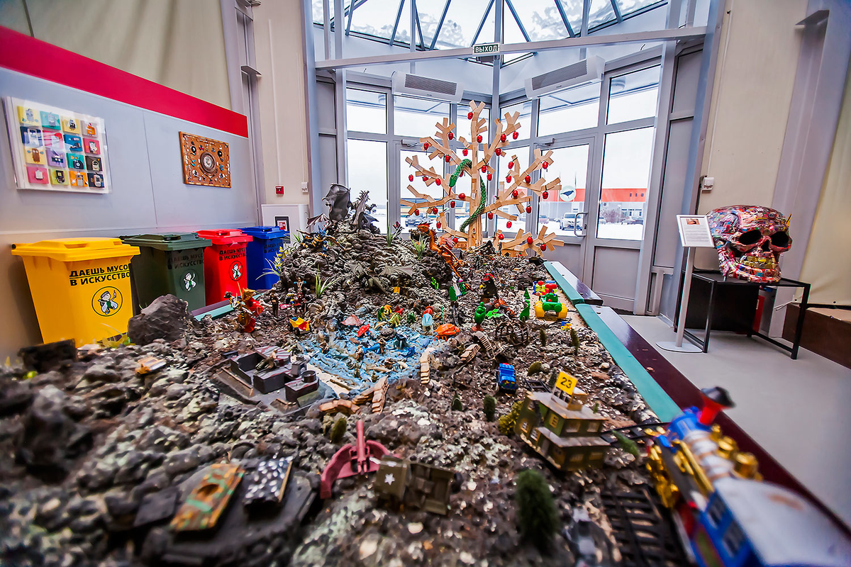 Здесь собраны оригинальные экспонаты современного искусства, изготовленные из вторсырья и прочего мусора.