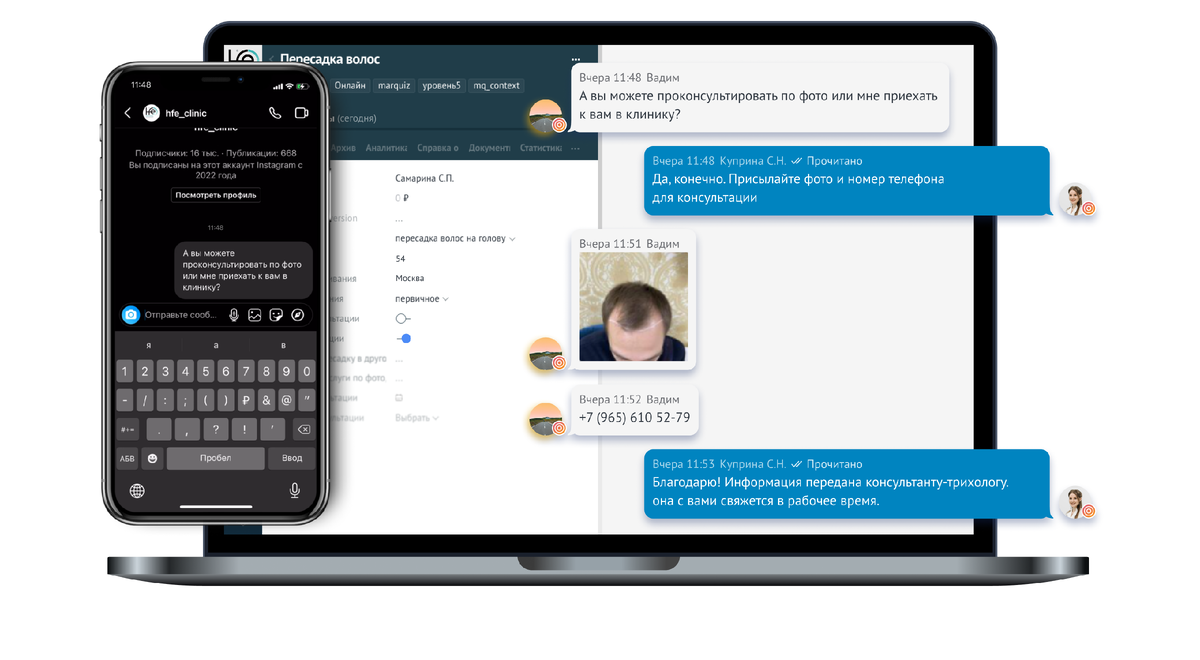 Пересадка волос — узкая ниша. Потенциальных клиентов мало. Более того, к ним нужно найти особый подход. Ведь они обращаются по деликатному вопросу. Долгое ожидание ответа или бестактное общение со стороны консультанта — и сделке не бывать. Плохой сервис затмит качественную услугу.