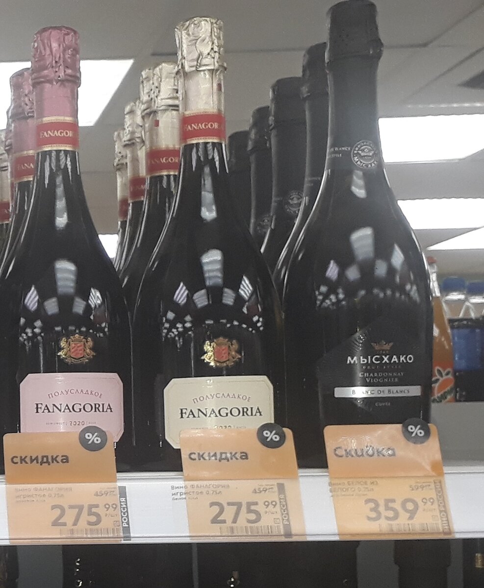Золотая балка Брют за 269 рублей и Абрау-Дюрсо Виктор Дравиньи Розе по 539 рублей.