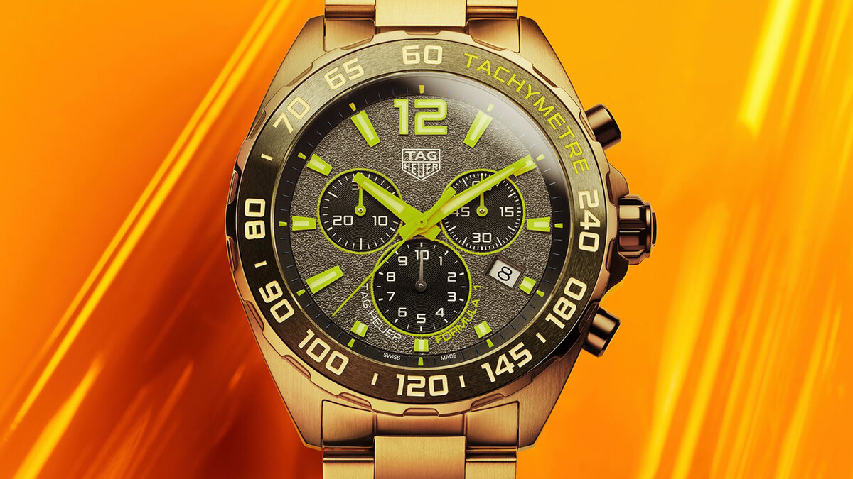 Новая коллекция предлагает трендовые асфальтовые циферблаты с яркими акцентами как в первой серии TAG Heuer Formula 1, представленной в 1986. Издания создавались для дайверов и автогонщиков. Хронографы оформлены в одинаковый стальной матовый корпус диаметром 43 мм с завинчивающейся заводной головкой и кнопками хронографа с черным PVD-покрытием. Керамический фиксированный безель черного цвета с белыми цифрами и надписью «Тахиметр» дополнительно покрывают светящимся составом, который имеет оранжевое или салатное свечение.