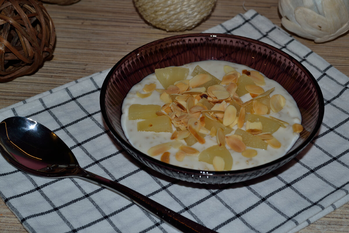 Как же легко можно преобразить обычную овсяную кашу. А всего-то навсего, добавим кусочки ананаса и обжаренных миндальных лепестков. Невероятный вкус сочетания всех продуктов радует мои вкусовые чувства, особенно хруст поджаренных лепестков. Всем доброго дня и вкуснейшего настроения ❤