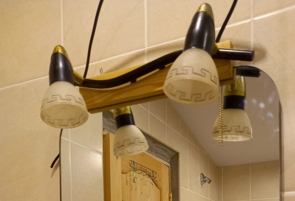 Я наконец-то повесила зеркало в своей почти доделанной ванной комнате. Да не просто зеркало, а со встроенным светильником. И всё это я сделала сама, с нуля своими руками. Предлагаю вам посмотреть, как я сделала это без специального дорогостоящего инструмента. Подсмотрела я этот способ на своём старом советском зеркале, но немного его доработала и упростила. На полноценный мастер-класс не претендую, но вдруг вам будет полезно и интересно. Выбираем зеркальное полотно. Для такого способа монтажа подойдет только зеркало прямоугольной формы или со скругленными углами (главное – прямые ровные верхняя и нижняя грани). Также важно, чтобы зеркало было с обработанной кромкой. Из обрезка сосновой доски (толщиной 25 мм) лобзиком выпилила два бруска. Длину и ширину брусков рассчитывала, исходя из размеров и формы зеркального полотна. В моём случае получились бруски 6х30 см. В каждом бруске выпилила паз 5х20 мм (где 5 мм – толщина зеркального полотна). Можно сделать это фрезером. Но у меня его нет,