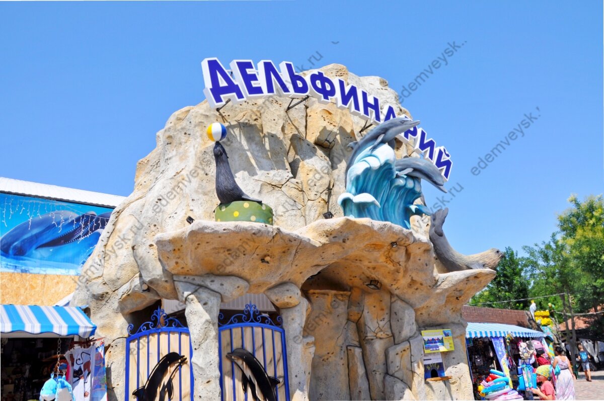 Дельфинарий в Ейске Незабываемое представление, сопровождаемое восторгом детей и взрослых. Ейский дельфинарий, расположенный на берегу Таганрогской набережной приглашает всех гостей города Ейска на удивительное шоу "Театр морских животных". Главные участники выступления это черноморские дельфины Зоррик и Рем, дальневосточные красавицы белухи Эля и Мира, северные морские котики Дюшес и Катя, четырехлетний шестьсот килограммовый морж Варя. Дельфины - высокоразвитые морские животные, до конца не изученные учеными, но пользующие уважением и любовью у большинства людей. Общение с дельфинами (дельфинотерапия) применяется в качестве профилактики и лечения детей с различными заболеваниями, давно доказано, что такая практика благоприятно влияет на психику и общее состояние здоровья детей, стоит прийти на представление с ребенком, и он обязательно отблагодарит Вас счастливым смехом. Все участники программы прирожденные артисты, умные, игривые, очень дружелюбные животные, которые в течение часа б