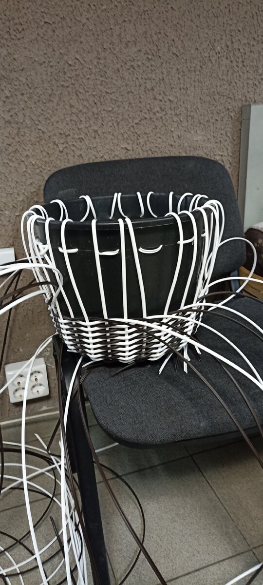Сегодня день удался. Сплел за день 2 кашпо под цветы. Пробовал новые методы плетения. Новые узоры. Смешал цветовую гамму. Получилось очень здорово. Контрастные цвета выглядят оригинально. Добавленные в плетение косички придают строгость. Изделие выглядит монументально. Я очень доволен сегодняшним днём. Проведённой работой. Но ещё есть к чему стремиться. Буду развивать собственное умение.