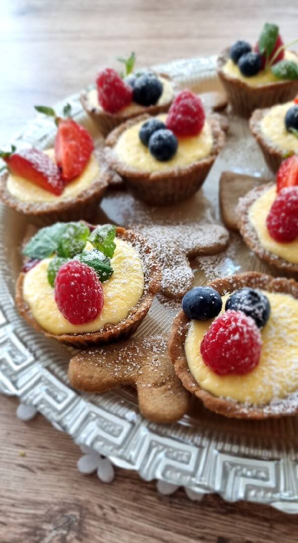 Скоро лето и каждая девочка хочет выглядеть постройневшей. Но всё равно иногда полезно побаловать себя сладеньким. Очень вкусные с ароматным песочным тестом, вишнёвым конфитюром и творожной начинкой корзиночки подойдут даже для вечернего чаепития. #пп Ингредиенты: миндальной муки, кукурузной муки, гречневой муки, яйцо, сливочного масла, подсластитель , ванилин, Конфитюр, вишни, можно замороженной, сахара, кукурузного крахмала, Начинка, мягкого творога, яйцо, подсластитель Способ приготовления: Соединяем все сухие ингредиенты, к ним натираем на тёрке сливочное масло, хорошо растираем в мелкую крошку массу, добавляем яйцо и если надо немного ледяной воды. Замешиваем тесто. Накрываем плёнкой и ставим в холодильник на 30 минут. Для конфитюра в коврик выкладываем вишню и немного воды, ставим на печь и доводим до кипения, добавляем сахар, немного варим. Затем добавляем крахмал и увариваем на маленьком огне. Для начинки взбиваем творог с яйцом и подсластителем. Раскатываем не очень тонко тест