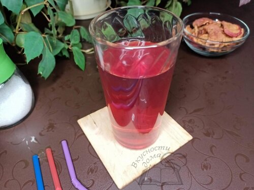 Шаг 8: Наш вкусный и ароматный компот из сушеных яблок и черной смородины готов, разливаем его по бокалам или стаканам и подаем к столу. Приятного всем аппетита!