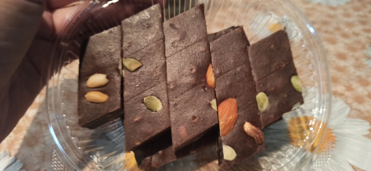 Позже я увидела похожий продукт в магазине восточных сладостей и сухофруктов. Там были представлены разные виды и формы халвы. Заинтересовал меня ещё один вид.