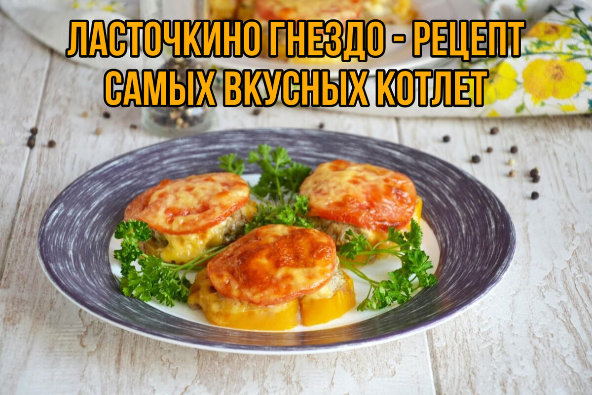 Рецепт приготовления котлет Ласточкино гнездо Лишь однажды попробовав это блюдо, хочется кушать его регулярно. Речь о классических котлетках. На их приготовление не затрачивается много времени, буквально таят во рту, да и по внешнему виду они получаются интересные. Что требуется для приготовления: На приготовление данного блюда уходит 1 час времени. Фарш смешивается с солью и перцем, добавляются также приправы к мясу. Далее необходимо нарезать чеснок и укроп. Предварительно необходимо замочить в молоке хлеб и перекрутить в мясорубке. Все это, а также два яйца, смешивается с фаршем. Необходимо тщательно перемешать и сформировать лепешки. Должно получиться двенадцать штук. Предварительно смазать противень растительным маслом и выложить лепешки на него. После этого тонкими кружочками нарезается лук, сыр, помидор. а также перец. Все это выкладывается на лепешку из фарша с добавлением кетчупа и майонеза. Все это необходимо аккуратно примять во внутреннюю часть лепешки. Духовой шкаф должен б
