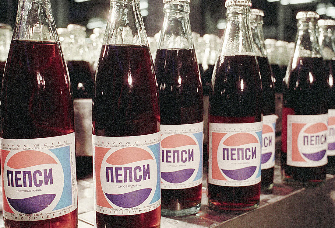 В разгар перестройки советским руководством было принято беспрецедентное решение об обмене нескольких военных кораблей на строительство заводов Pepsi. В обмен на него американская компания получила 17 подводных лодок, эсминец, крейсер и торпедоносец. Впервые напиток Pepsi появился в стране Советов в 1959-м году. Тогда в московских Сокольниках проходила Американская национальная выставка. Именно на ней Хрущёву дали попробовать знаменитую газировку. Она ему понравилась, как и простым советским гражданам, которых американцы также угощали на выставке. Но вот строительство первого завода началось только в семидесятых. В 1973-м году руководитель компании и начальник Союзплодимпорта подписали пятилетний контракт на производство трёх миллионов ящиков в год. Для компании это было каплей в море – она производила тогда в год восемьсот миллионов ящиков. Компания на свои средства построила завод в Новороссийске, купила оборудование и обучила персонал. В Советский Союз привозили концентрированный