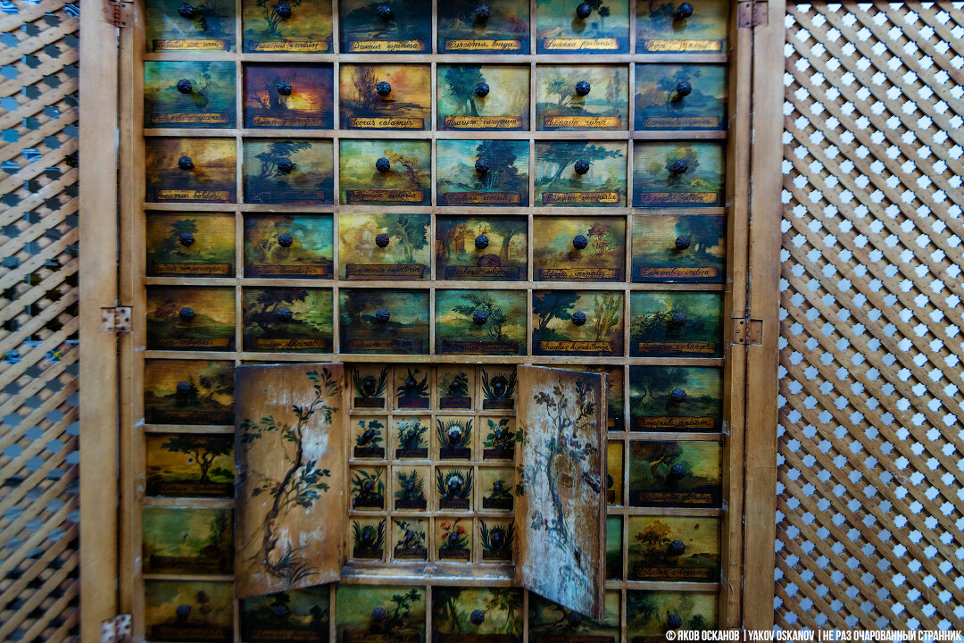 Аптекарский шкафчик в одном из музеев Санто-Доминго. Вот так несколько веков назад выглядела аптека – шкафчик с сушёными травами, на каждой крышке рисунок растения и его латинское название.