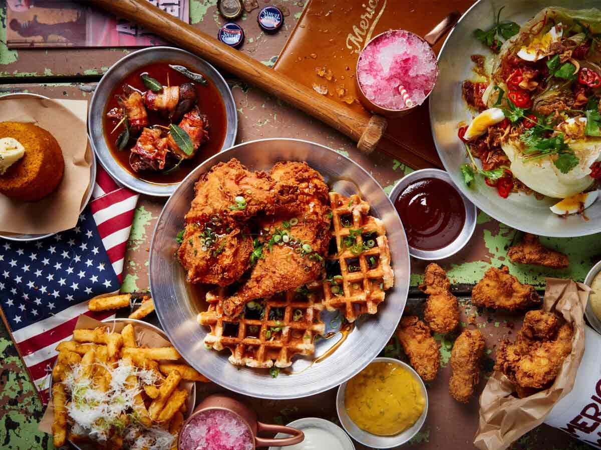 Американская кухня вобрала в себя кулинарные традиции многих народов: англичан, индейцев, немцев, испанцев, китайцев, итальянцев. хот-доги, бургер Слоппи-Джо, пицца Чикаго, макароны с сыром мак-энд-чиз, спагетти с митболами панкейки с черникой или кленовым сиропом. Это лишь верхушка айсберга. Подборка менее знакомых нам блюд, но очень популярных в Америке. Гумбо или Гамбо (англ. gumbo, транскрипция «гамбо», транслитерация «гумбо») — блюдо американской кухни, распространённое в штате Луизиана. Представляет собой густой суп со специями, похожий по консистенции на рагу. Кобб — распространенный в кухне США салат, состоящий, как правило, из нарезанной зелени, помидоров, жареного бекона, отварного куриного мяса, авокадо, варёных яиц, лука, сыра рокфор и винегретной заправки. Иногда также в его состав входят чёрные оливки. Джамбалайя — это блюдо креольской и кейджн (каджунской) кухни. Очень удобное в приготовлении, сытное и ароматное — это блюдо очень часто встречается на повседнев