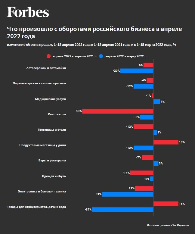 Немного статистики и советов. Бизнес реагирует. По данным «Чек Индекс» like-for-like за период с 01 по 15 апреля 2021 и 2022 годов показал падение выручки практически во всех сегментах розничной торговли и сферы услуг. Лидер по снижению выручки – кинотеатры. Выручка сократилась практически в два раза. Смотреть нечего. Мультик про Суворова если только. Сам мультик не смотрел, но рекомендую прочитать книгу. Есть и те, кто увеличил выручку. Это продуктовые магазины у дома и строительные магазины. Здесь увеличение выручки логично обосновано. Цены выросли. А кушать и строить люди будут всегда. Бизнес затаился. В таких условиях кто-то сжимается. Кто-то, наоборот, растет. Есть и те, кто прекратил вести предпринимательскую деятельность. За период с 24 февраля по 21 апреля 2022 года закрылось 158’000 хозяйствующих субъектов. Это меньше, чем за аналогичные периоды 2020 и 2021 годов. Бизнес уже знает, что такое кризис. Предприниматели затаились. Бизнес борется. Каждый выживает как может. Одни уве
