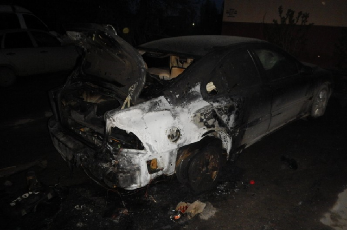 «Огнем было повреждено заднее правое колесо, лакокрасочное покрытие кузова с задней правой стороны, заднее стекло, крышка багажника», - сообщили в МВД.