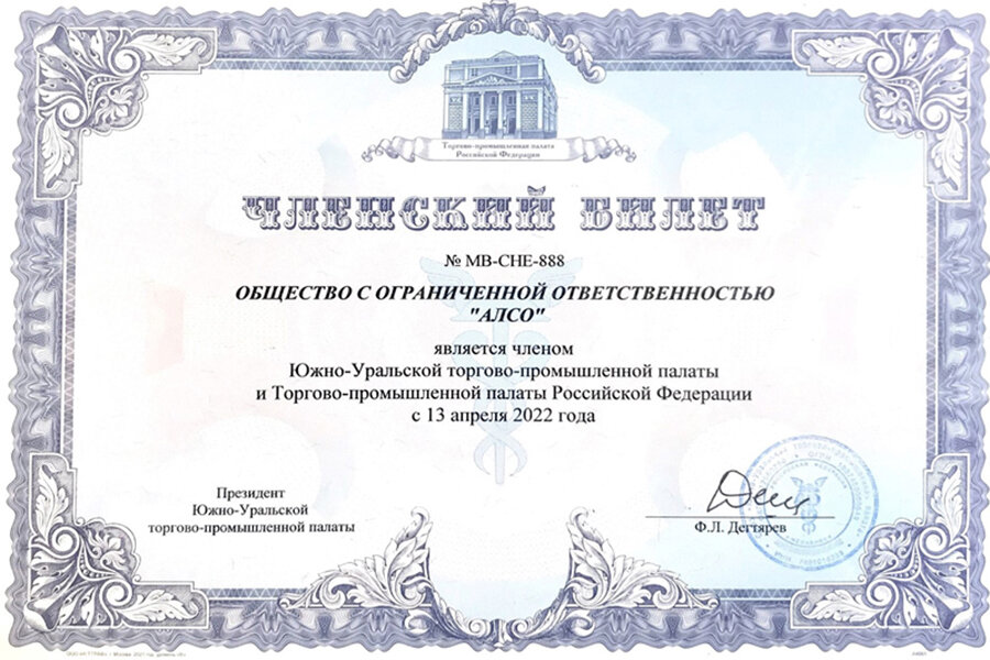 В ходе события резидент ЮУТПП Ф.Л. Дегтярев поздравил предпринимателей с вступлением в члены Южно-Уральской торгово-промышленной палаты и вручил членские билеты новым участникам. Среди них - компания ООО «АЛСО». Так, вступив в состав ЮУТПП, завод по изготовлению шаровых кранов стал членом Торгово-промышленной палаты Российской Федерации.