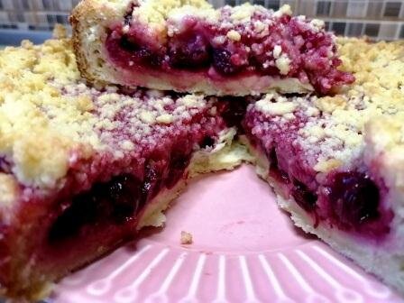 Всем доброго времени суток! Сегодня делюсь рецептом удивительного вишневого пирога к чаю, испеченного из двух видов теста. Хоть теста и два, но на самом деле рецепт очень простой и быстрый. Приступим... Нам понадобится: Тесто готовое (слоеное, слоено - дрожжевое) - 450 - 500 грамм; Вишня замороженная (свежая) - 300 грамм; Сахар - 3-3,5 ст.л. Для второго теста ( штрейзель): Штрейзель готовится в таких пропорциях 2:1:1., то есть муки берется в два раза больше, чем сливочного масла и сахара. Сахар - 70 грамм: Сливочное масло (слегка подмороженное) -70 грамм Мука - 140 грамм. 1. Берем готовое тесто. 2. Раскатываем его и укладываем в разъемную форму, оставляя бортики. На дно формы выложить бумагу дл выпекания. 3. Готовим штрейзель. В миске смешиваем все ингредиенты для него: сахар, сливочное масло и муку. Для вкуса можно также добавить ванилин. 4. Все быстро перетираем в крошку. Важно! Чтобы готовая растертая масса не растаяла и не слиплась, надо ее отправить в холодильник. 5. Теперь в ф