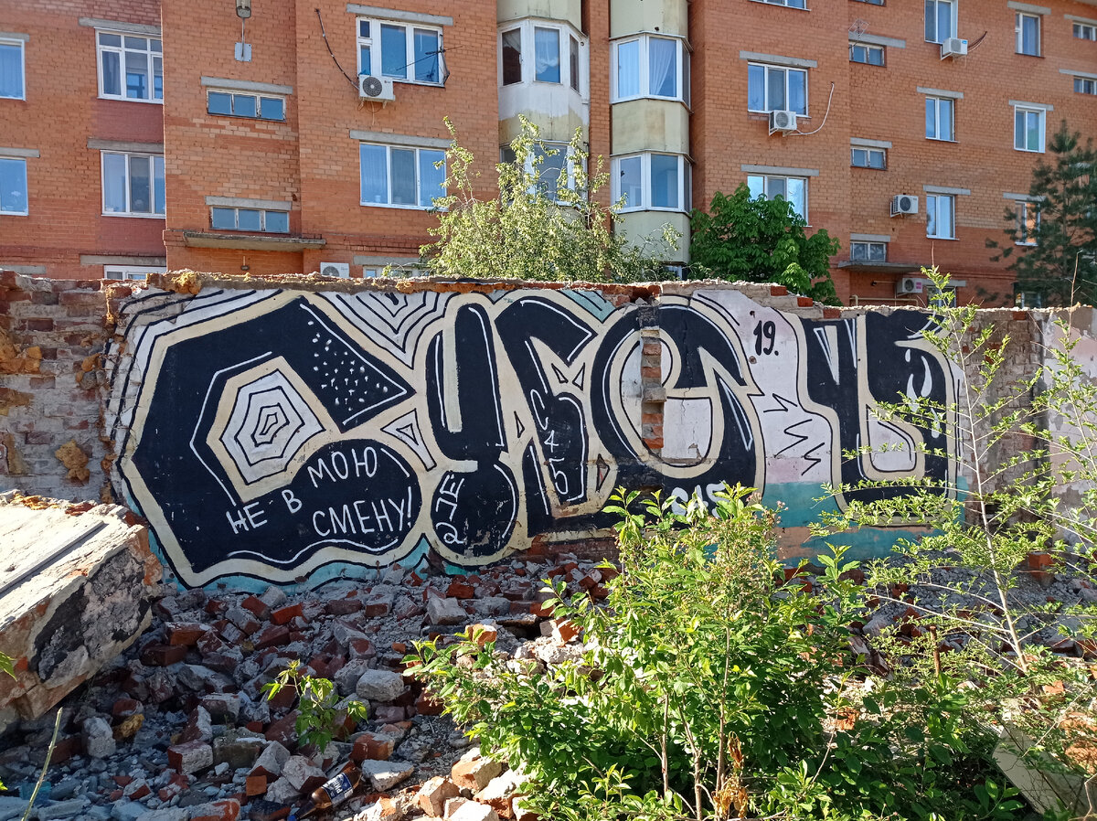 Вчера по всем пабликам прошла гневная информация о разборе "дома с ангелами". Проходя мимо него утром, конечно же, заглянула во двор и наткнулась на это граффити: Как думаете, что за слово написано? Кстати, когда выходила из подворотни, встретила коллегу, который оказался свидетелем этого нашумевшего происшествия. Так вот он рассказал, что сначала приехали журналисты, попросили разборщиков отбить одного ангела, аккуратно положили на асфальт, отсняли материал и уехали. Такие времена.
