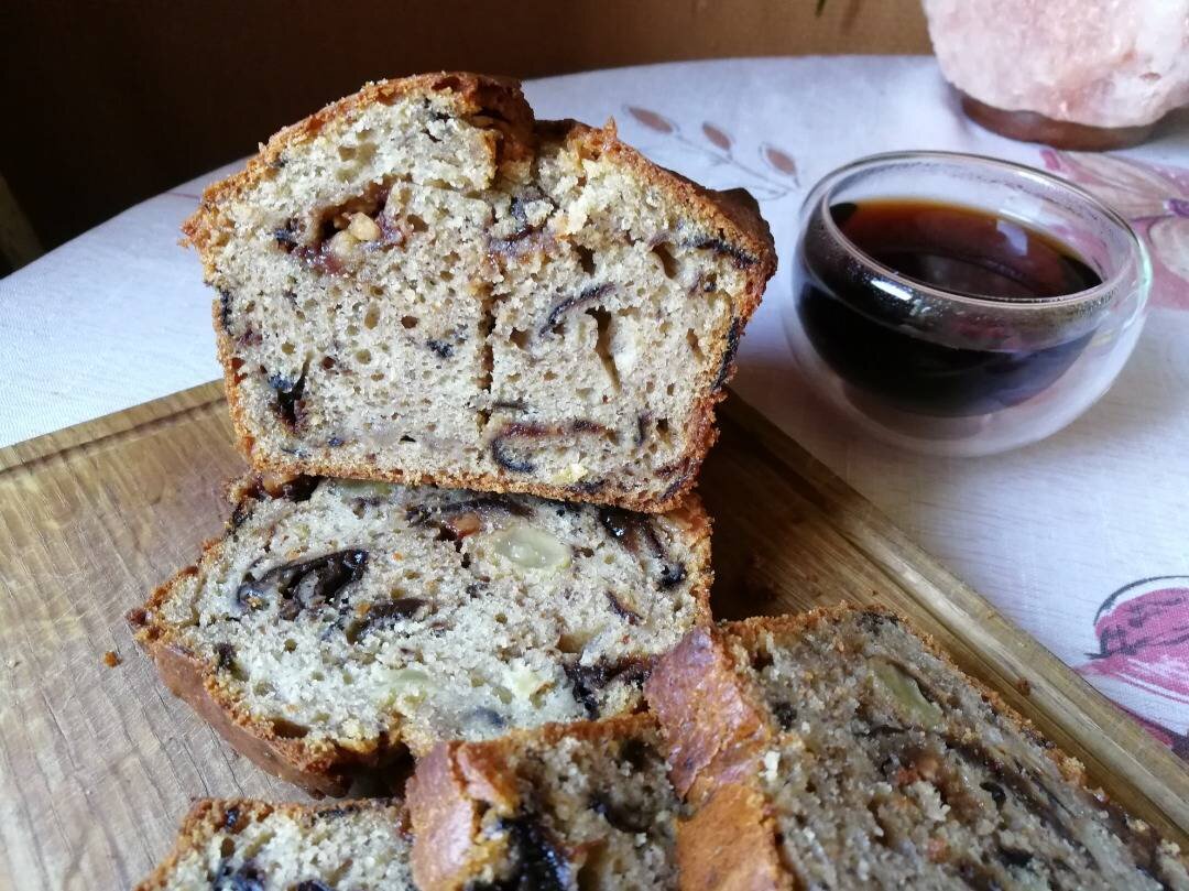 #непп Приготовлено по рецепту Татьяны Ряжских (Стрельцовой) @tatika Ингредиенты: Закваска (остатки, у меня ржаная 100% влажности) , Яйцо куриное , Сметана , Соль , Сода , Сахар , Коньяк, ром , Разрыхлитель , Масло растительное, Мука пшеничная в/с , Чернослив, Изюм Способ приготовления: Сухофрукты предварительно моем, заливаем горячей водой, оставляем на 10-15 минут. Воду сливаем, сухофрукты обсушиваем на бумажной салфетке, чернослив освобождаем от косточки, режем на кусочки. К закваске добавляем соду, перемешиваем. Добавляем сметану, яйцо, перемешиваем. Добавляем все остальные продукты, перемешиваем ложкой. Духовку разогреваем до 180-200℃. Форму для выпечки смазываем сливочным маслом. Перекладываем тесто в форму, разравниваем мокрыми руками или мокрой ложкой. Отправляем форму в горячую духовку. Выпекаем при температуре 180-200℃ до готовности (40-60 минут). Готовность проверяем деревянной зубочисткой. Извлекаем кекс из формы, остужаем на решетке. Горячий кекс сверху можно посыпать сахар