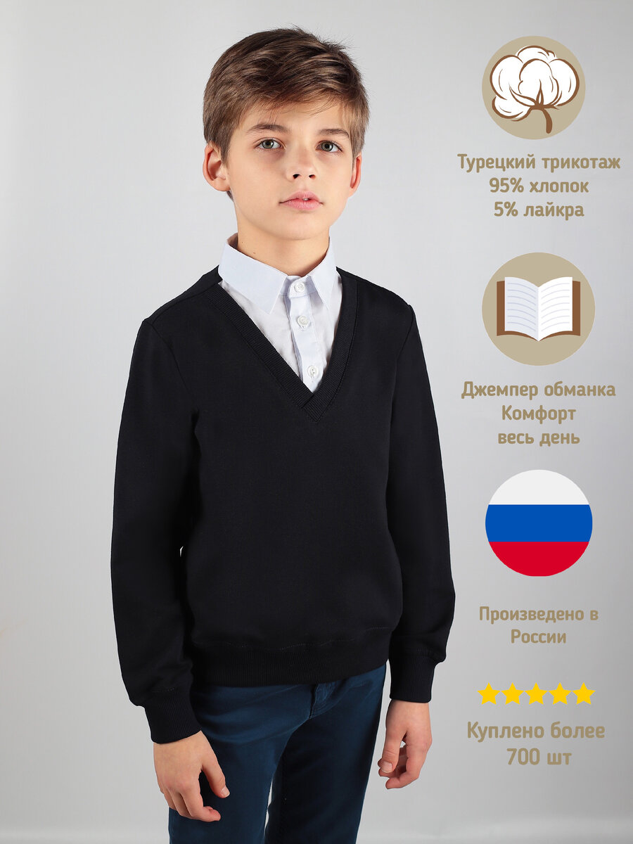 Всем добрый день, более 10 лет мы занимаемся производством детской одежды под маркой Alir ( Алир ) Школьный джемпер-обманка или пуловер-обманка для мальчика с имитацией рубашки выполнен из качественного хлопкового трикотажа с небольшим добавлением лайкры. Ворот сшит из хлопковой рубашечной ткани. Джемпер-обманка выглядит как полноценный комплект рубашки и джемпера. Мальчик будет всегда опрятен в школе, сохраняя при этом официальный дресс-код. Качество наших изделий подтверждают многократные стирки, при которых пуловер-обманка сохраняет прежний вид, без деформации и окрашивания ворота. Наша торговая марка представляет большой ассортимент качественной, красивой, классической школьной и спортивной одежды российского производства для детей и подростков. У нас вы можете купить Джемпер обманка для мальчика в школу , рубашки обманки , пуловер обманка для мальчиков Вот ссылка на наш обманку www.wildberries.ru/...=xs