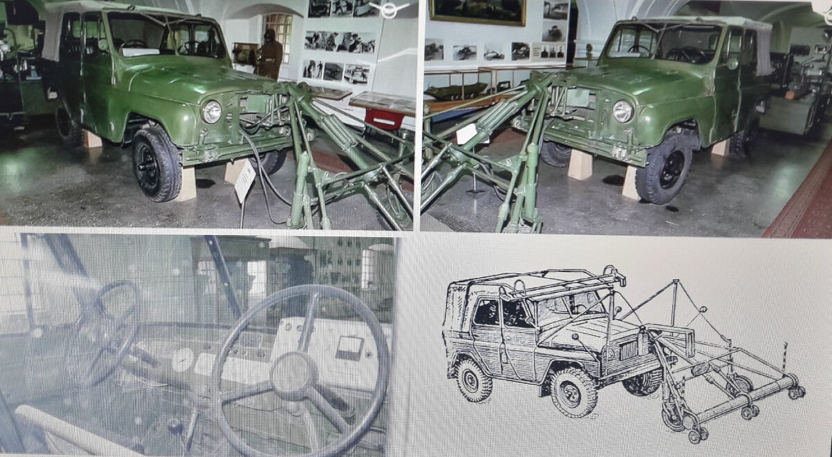 Инженерная мысль не знает границ! Порождая порой странные конструкций многие из них так и остались не известны широкой публике за счёт узкой специализаций. Ну естественно 2 руля ставить просто так не будут, подобная конструкция подразумевает доп. защиту от сложных условий эксплуатаций, тем более что назначение данного грузовика чисто военное. На фото ниже У УАЗа есть тележка спереди. Она несла в себе установку индукционного мина искателя их применяли для разминирования путей по которым должна проследовать колонна автомобилей. Минимальный экипаж такой машины 2 человека оператор и водитель к ним в случай необходимости добавляли 3 сапёра для разминирования. Зачем 2-й руль? За 2-м рулём сидел оператор и управлял поисковым элементом, находя мину установка тормозила машину блокируя тормоза и разъединяя сцепление. Бронирование для такого УАЗа предусмотрено не было, завесило всё от оператора и надёжности автоматики. 1-е образцы ставили на ГАЗ-69 а после модернизаций использовали уже на УАЗ.