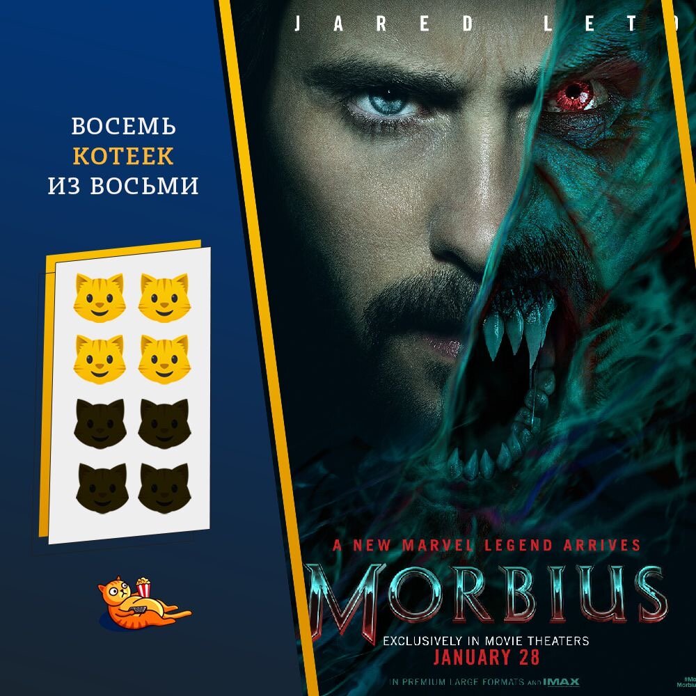 Студия Sony продолжает развивать свою паучью киновселенную, выпустив Венома, Человек-Паук: Через вселенные, а после и Веном 2 подоспел. Первые две картины - хит, одна даже с Оскаром. С Веномом 2 что-то не задалось. Интересно, может поэтому сюжет Морбиуса - это чисто сюжет Венома? Зачем рисковать и вот это вот что-то придууумывать там, что-то как-то интересно выстрааааиввать? Правильно. Не нужно. Врубай копир! Из-за сюжета и, возможно, задержки, если не ошибаюсь, в 2 года, Морбиус выглядит вторичным. Нет, при просмотре я думала «Хороший фильм. И чего все так возникают что 💩? Непонятно». Потом приходит осознание «я же это уже видела». И дело даже не в Веноме. Студия Марвел уже 10 лет выпускает свой сериал и мы повидали стоооооолько оридженов - не счесть. И от Морбиуса, после довольно захватывающих трейлеров, все ждали чего-то большего. Актерский состав хорош, хоть и как будто бы очень мал. Помню 4х персонажей: Морбиус, его друг, его коллега и врач. Там был ещё кто-то? В ответ пожимаю