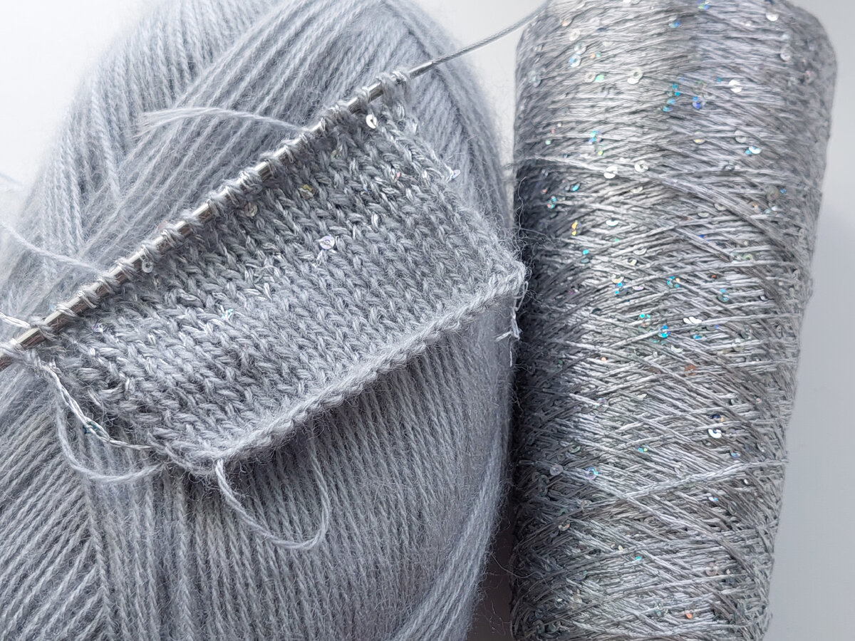 Давно мечтала попробовать такую добавку. Случайно попалась мне в интернет магазине, и я не смогла устоять. Сразу же подобрала к ней по цвету основную нить. Выбор пал на Ализе ангора голд. Нить с пайетками имеет длину 600 м. На всё изделие не хватит конечно, поэтому буду вводить её полосами. Планирую вязать из этой прелести кардиган или жакет для дочери на новый учебный год. По идее носить его дочка будет на блузку или водолазку, поэтому наличие шерсти в составе пряжи не повлияет на восприятие. Пайетки имеют небольшой диаметр. Цвет блеска радужный. Вяжется легко, без зацепок. Две пряжи сливаются в единое полотно. Уже трудно сказать как мне больше нравится - с пайетками или без. Образец связан спицами № 3,5. И мне кажется это идеальное сочетание. Ализе ангора голд: в 100 гр 550 м, цвет №21. Состав: 80% акрил, 20% шерсть. Рекомендуемы спицы № 3-6, крючок № 2-4. Делитесь своим мнением в комментариях. Спасибо за внимание!