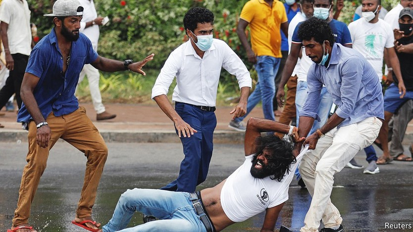 Ланкийцы в ярости. 9 мая протестующие подожгли десятки домов, большинство из которых принадлежало политикам, что спровоцировало отставку Махинды Раджапакса, некогда любимого всеми премьер-министра. Силы безопасности эвакуировали его и его семью на военно-морскую базу, когда толпа попыталась штурмовать его официальную резиденцию. Линчеватели установили контрольно-пропускные пункты у аэропортов страны, чтобы помешать ему и другим официальным лицам сбежать. Действует чрезвычайное положение. Армии было приказано расстреливать бунтовщиков и мародеров на месте.