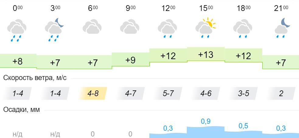 Синоптики рассказали, какая погода ожидает жителей Кировской области в воскресенье, 15 мая. Днем температура воздуха составит +12…+13°С. Утром и вечером – до +7°С. Весь день ожидается пасмурная погода: после полудня, по прогнозу синоптиков, начнется небольшой дождь, который продлится до ночи. Скорость ветра в течение суток составит 1-8 м/с.