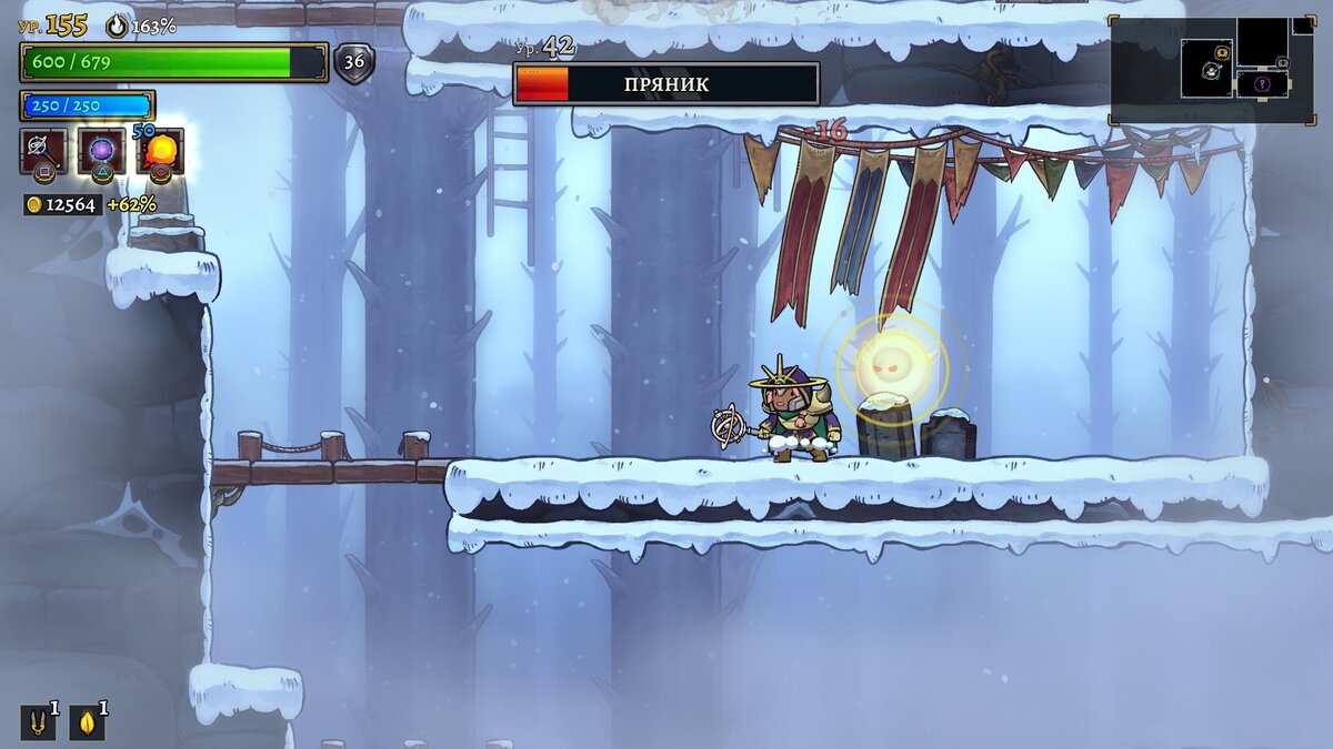 Я долго думал, почему Rogue Legacy 2 такая крутая и залипательная. Да, она хороша уже на базовом уровне — в ней банально приятно прыгать и стукать врагов по лбу всяким. Да и с дизайном полный порядок — что локаций, что врагов и боссов. Однако первую часть я гонял больше сотни часов. И сейчас делаю то же самое со второй. А так сильно одними лишь базовыми элементами меня не покорить, особенно учитывая, во сколько рогаликов я за последние годы переиграл. В итоге я сделал вывод, что магическая сила Rogue Legacy 2 в идеальном балансе рандома и контроля над ситуацией. С одной стороны, у нас есть чёткая, понятная прокачка. Собираем монетки и ресурсы, с их помощью качаем силу, увеличиваем интеллект, открываем новые классы и покупаем броню покруче. Всё предсказуемо и благодаря этому в каждом забеге есть смысл — ты станешь сильнее, даже если сольёшся, не добежав до очередного босса. Но с другой, каждый раз в этот процесс вмешивается рандом, который может сделать твоё прохождения в разы сложнее,