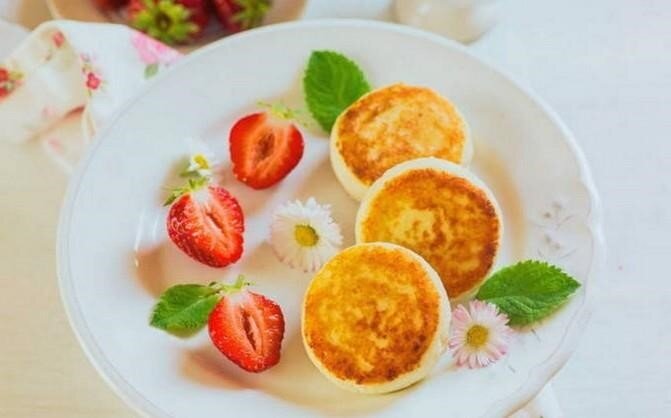 Чтобы на выходе получить вкусные, с идеальной формой творожники, в тесто следует добавить немного манки. Таким образом, даже на этапе формирования заготовок они не будут разваливаться. А вы в свою очередь приготовите невероятно нежный и полезный завтрак. Ингредиенты: Способ приготовления: 1. Чтобы не отвлекаться на лишние действия, подготовьте продукты согласно списку и положите их на поверхность, где будете работать. 2. Для удаления лишней жидкости из основного ингредиента - творога - выложите его на сито, выстеленное марлей и отожмите. 3. Переложите слегка подсушенный творог в миску, у которой есть высокие бортики. 4. В ту же миску добавьте яйца, два типа сахара и манную крупу - хорошо перемешайте. 5. Манная крупа должна увеличиться, поэтому оставьте ее при комнатной температуре. Хватит 15-20 минут. 6. Далее посыпьте стол мукой, разделите тесто на равные части и скатайте в шарики. 7. С помощью широкого ножа или другого острого инструмента, придайте творожникам аккуратную форму. Срежь