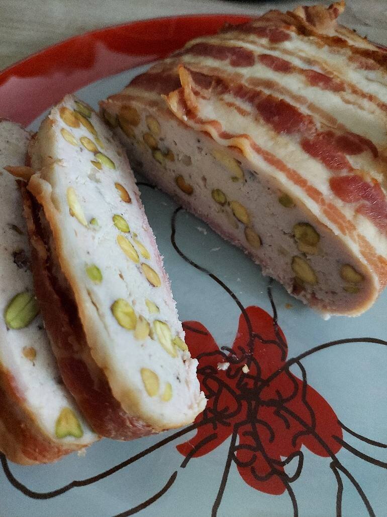Изысканно и вкусно! Ингредиенты: филе индейки (можно куриное филе), сливочного масла, яичных желтка, молока, муки, очищенных фисташек, сырокопченого бекона, Соль, специи Способ приготовления: Филе вымойте, нарежьте кусочками и пропустите через мясорубку. Сливочное масло распустите на маленьком огне и добавьте к измельченному филе вместе с яичными желтками и горячим молоком. Всыпьте муку, посолите, поперчите по вкусу и все хорошо перемешайте. Очищенные фисташки слегка подрумяньте на сковороде без добавления жира. Дайте немного остыть и подмешайте их к получившемуся фаршу. Бекон нарежьте длинными тонкими ломтиками (можно готовую нарезку купить). Небольшую огнеупорную форму слегка смажьте любым жиром и выстелите подготовленными ломтиками бекона так, чтобы кончики свисали с двух противоположных сторон посуды. Духовку разогрейте до 180 градусов. В форму выложите получившийся фарш и накройте его сверху свободными кончиками бекона. Поставьте в духовку на 30 минут. Готовому суфле дайте немного