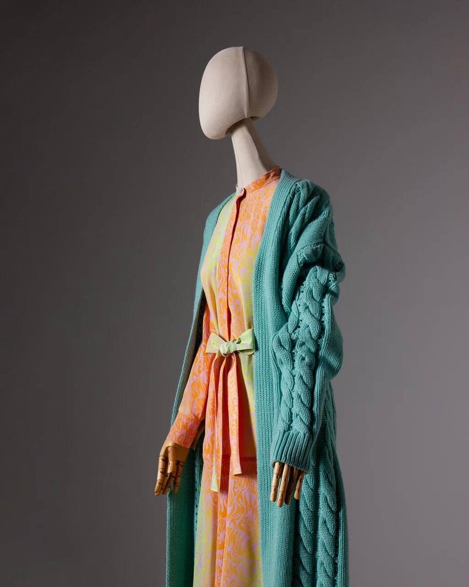 Шёлковое платье с акварельным принтом выглядит ещё ярче и привлекательней в сочетании с фактурным кашемировым кардиганом цвета морской волны. Новинки уже на сайте и в магазине Maison Adore: