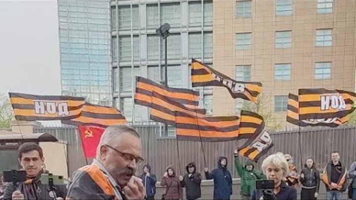 МОСКВИЧИ ВЫШЛИ НА АКЦИЮ ОКОЛО АМЕРИКАНСКОГО ПОСОЛЬСТВА: "США - ИМПЕРИЯ ЛЖИ". В Москве прошла акция у здания американского посольства. В акции было задействовано около 20 человек. Флаги в цветах георгиевской ленты, красные знамена и российские. Играл гимн России, активисты были в военной форме времен ВОВ. Развернули плакаты: США – империя лжи и обмана, США - создатель нацистов, фашистов и террористов, Вон территории бывшего СССР И другие призывы. В громкоговоритель активисты призывали сотрудников посольства выйти с поднятыми руками, требовали покинуть и очистить от своей лжи территории бывшего Союза. Не далеко от американского посольства другие активисты облили красной краской часть стены с польского посольства красной краской. Очередная акция прошла возле посольства Латвии в Москве в ответ на действия официальных властей Риги. И вряд ли это конец. То, что происходит на Западе, то отношение, которое активно транслируется по отношению к русским не может оставить равнодушным к происх
