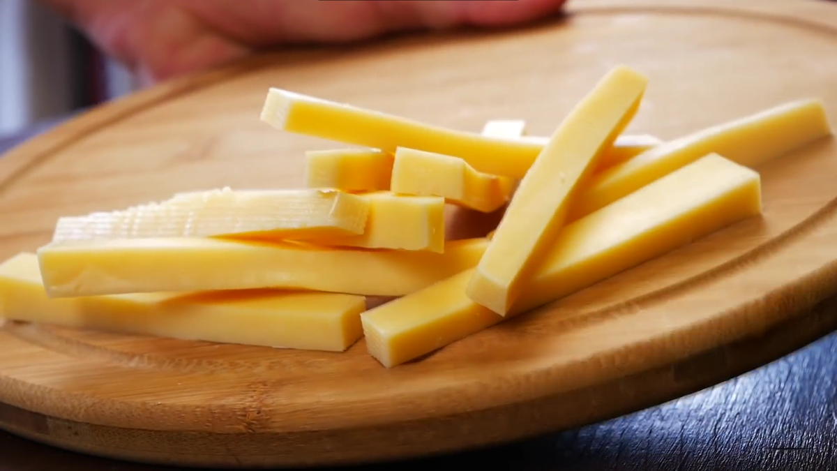Приветствую всех . Наверняка многие из вас любят посмотреть фильмы не только в кинотеатре , но и дома . Но если в кинотеатре есть витрина с большим выбором закусок и напитков , то дома нам придется все это готовить самим . По этому сегодня я покажу вам быструю закуску , которую можно приготовить под фильм . Поехали ! 1. сырные палочки 😋 Для их приготовления , нам нужно порубить сыр на кусочки , толщиной с мизинец Перейдем к панировке . За основу возьмем панировочные сухари , купленные в магазине . Если оставить так , то получится довольно пресно . Поэтому добавляем чуть куркумы , соли и перца . Так же можете добавить что то свое ! Далее в отдельную миску разбиваем пару яиц и перемешиваем Осталось только в последнюю миску насыпать муки и все приготовления завершены Теперь берем брусочек сыра , валяем в муке , потом в яйце , затем в панировку и в обратном порядке . Проделав эту манипуляцию со всем оставшимся сыром , берем сотейник и наливаем масло Затем ставим его на огонь , довод